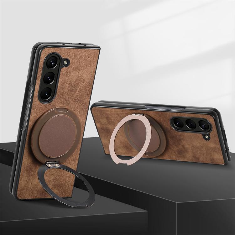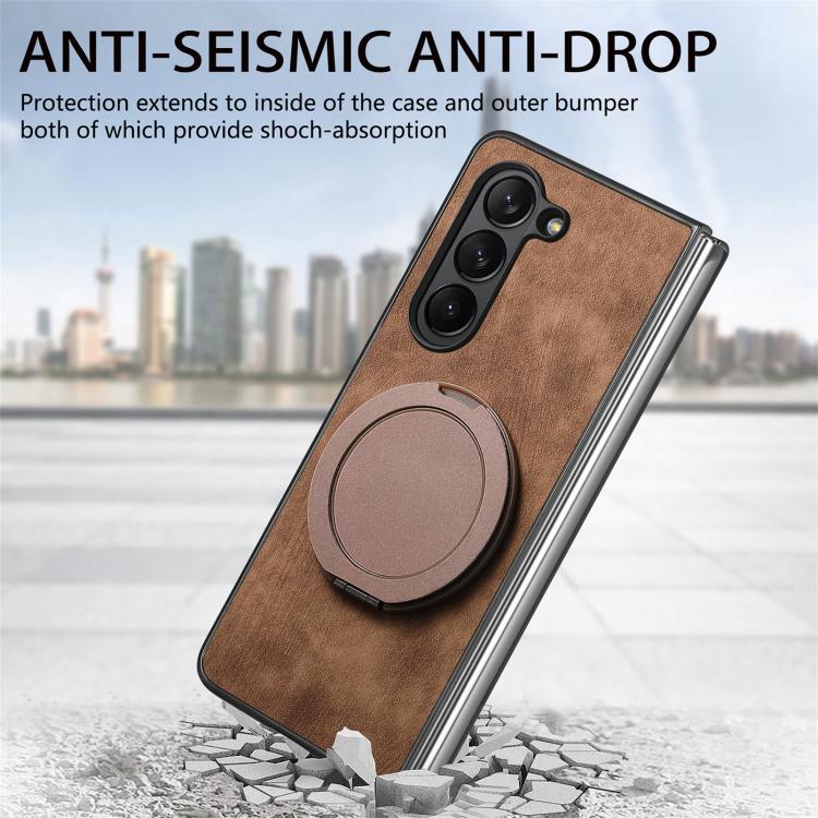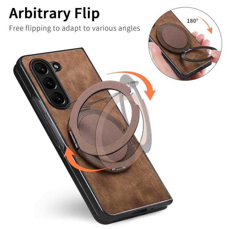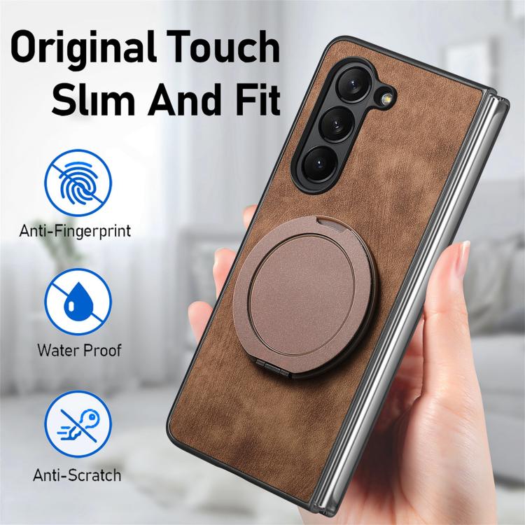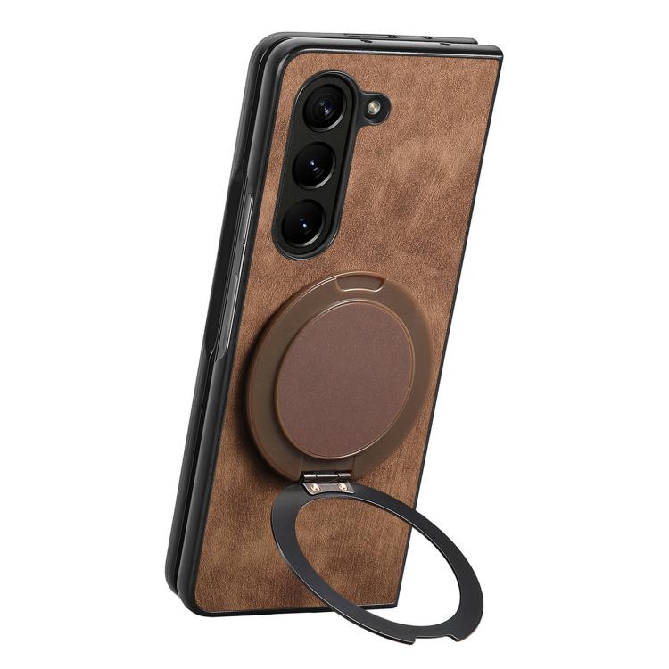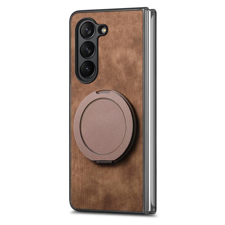 Funda de cuero retro con soporte giratorio redondo para Samsung Galaxy Z Fold6 (marrón)