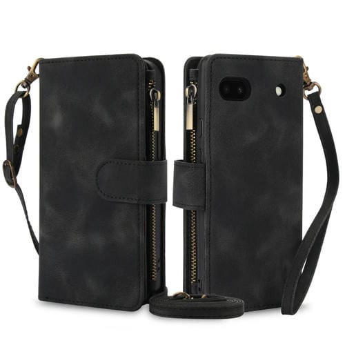 Funda de Cuero Rfid con Cremallera para Google Pixel 6 Dream con 9 Tarjetas y Cordón (Negro)