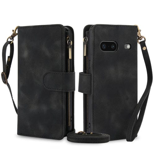 Funda de Cuero Rfid con Cremallera para Google Pixel 7 Dream con 9 Tarjetas y Cordón (Negro)