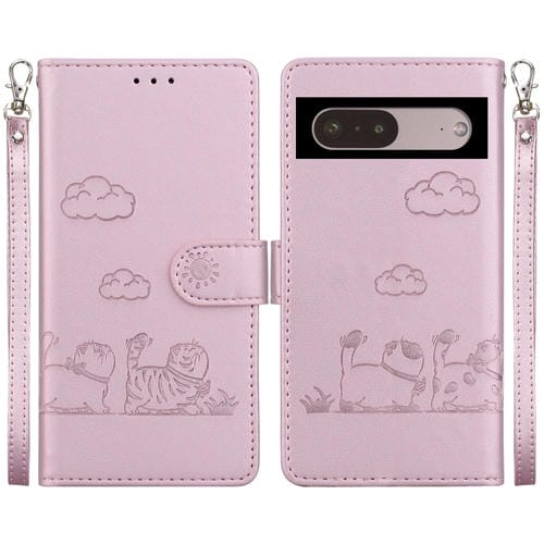 Funda de Cuero Rfid para Google Pixel 7 Pro con Diseño de Gatos (Oro Rosa)