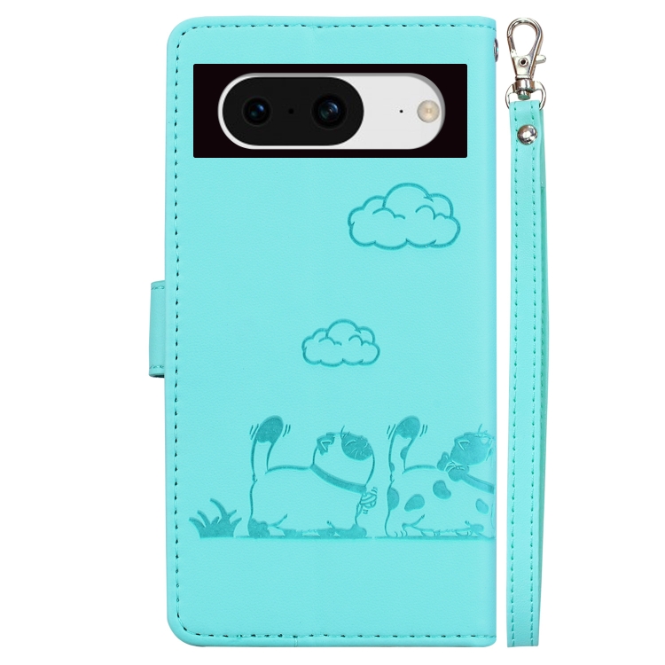 Funda de Cuero Rfid para Google Pixel 8 Pro con Diseño de Gatos (Verde)
