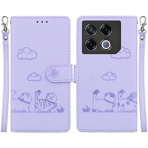Funda de Cuero Rfid para Infinix Gt 20 Pro 5G con Diseño de Gatos (Morado)