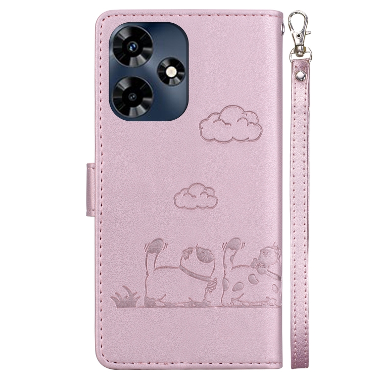 Funda de Cuero Rfid para Infinix Hot 30 4G con Diseño de Gatos (Oro Rosa)