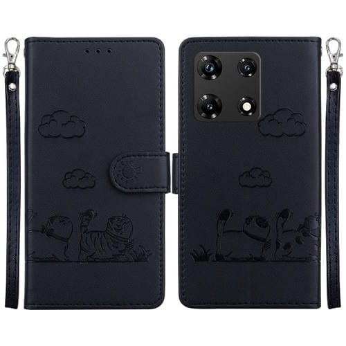 Funda de Cuero Rfid para Infinix Note 30 Pro con Diseño de Gatos (Negra)
