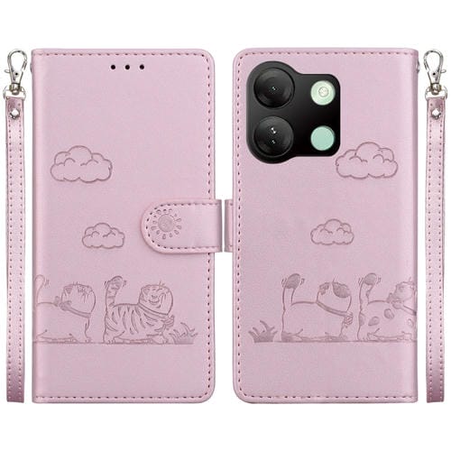Funda de Cuero Rfid Infinix Smart 7 HD con Diseño de Gatos (Oro Rosa)