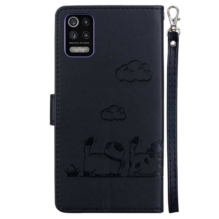 Funda de Cuero Rfid para LG K52/K62/Q52 con Diseño de Gatos (Negra)