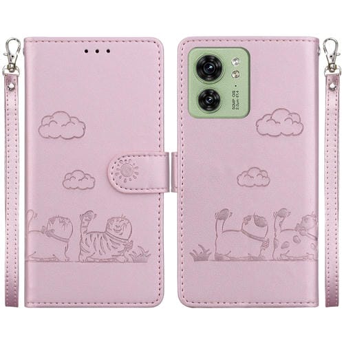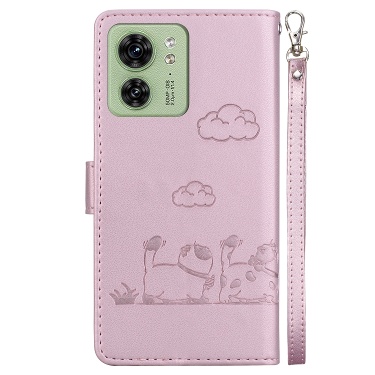 Funda de Cuero Rfid para Motorola Edge 40 con Diseño de Gatos Lindos (Oro Rosa)