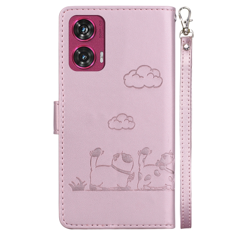 Funda de Cuero Rfid para Motorola Edge 50 Fusion con Diseño de Gatos (Oro Rosa)
