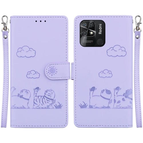 Funda de Cuero Rfid con Diseño de Gatos para Redmi 10C (Morada)