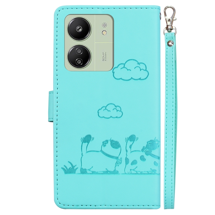 Funda de Cuero Rfid con Diseño de Gatos para Redmi 13C 4G/5G (Verde)