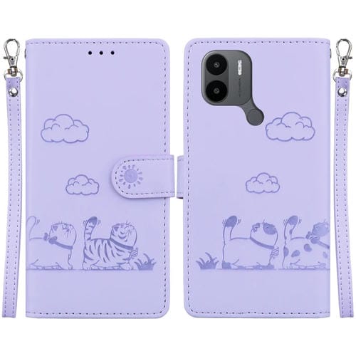 Funda de Cuero Rfid con Diseño de Gatos Lindos para Redmi A1+ 4G Global (Morado)