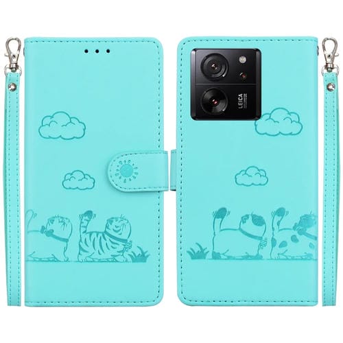 Funda de Cuero Rfid con Diseño de Gatos Lindos para Redmi K60 Ultra (Verde)