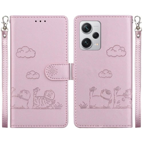 Funda de Cuero Rfid con Diseño de Gatos Lindos para Redmi Note 12 Pro+ (Oro Rosa)