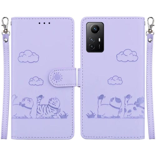 Funda de Cuero Rfid con Diseño de Gatos para Redmi Note 12S (Morado)