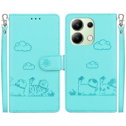 Funda de Cuero Rfid con Diseño de Gatos Lindos para Redmi Note 13 4G (Verde)