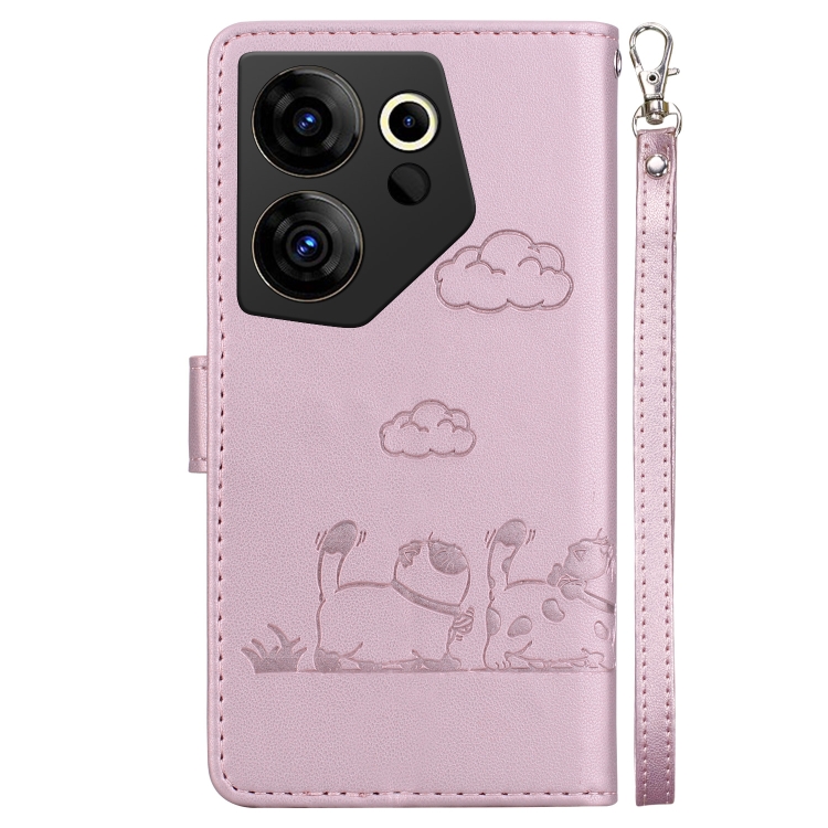 Funda de Cuero RFID para Tecno Camon 20 Premier 5G con Diseño de Gatos (Oro Rosa)