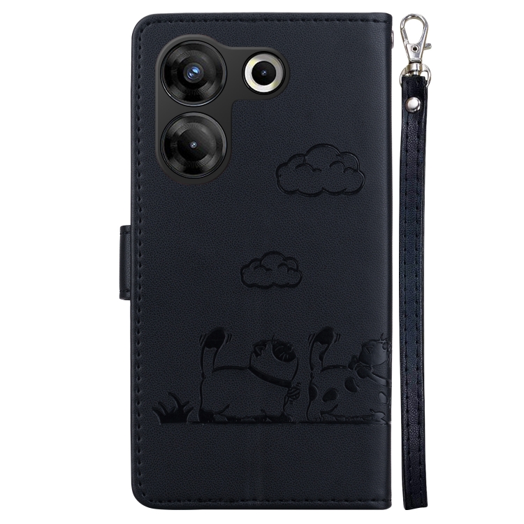 Funda de Cuero Rfid para Tecno Camon 20 Pro 5G con Diseño de Gatos (Negra)