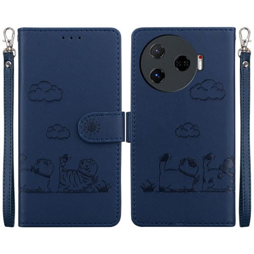 Funda de Cuero RFID para Tecno Camon 30 Pro 5G con Diseño de Gatos (Azul)
