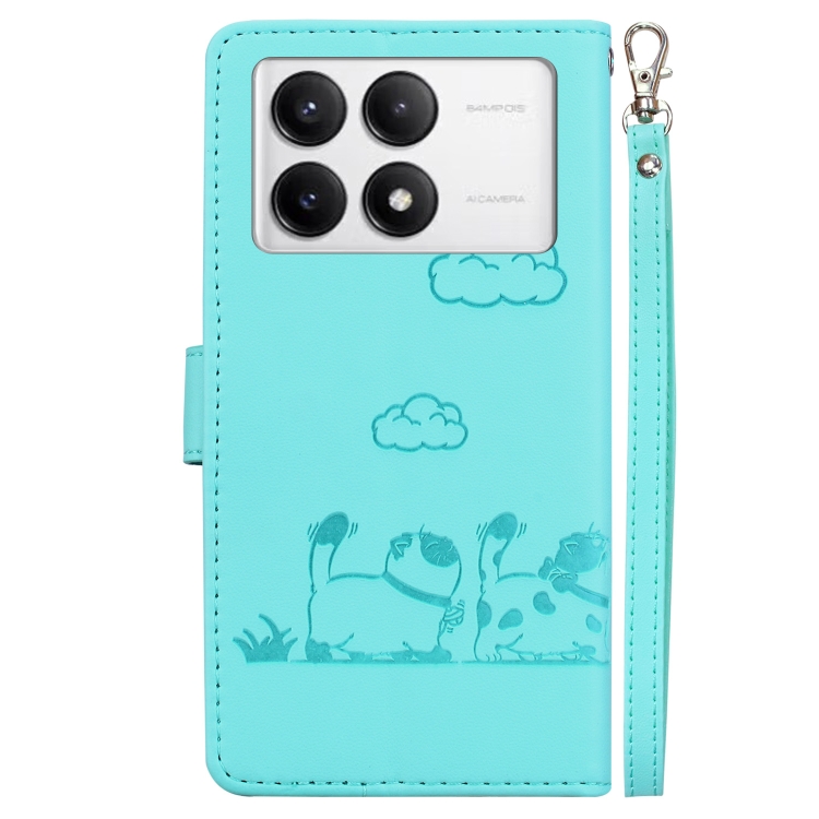 Funda de Cuero Rfid con Diseño de Gatos para Xiaomi Poco F6 Pro (Verde)