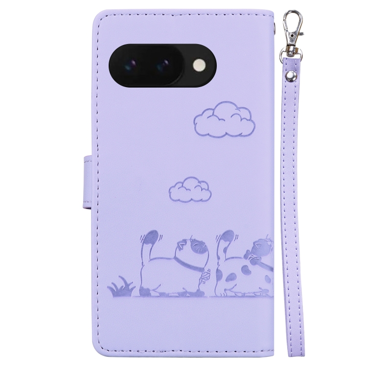 Funda de Cuero Rfid para Google Pixel 9A con Diseño de Gatos (Morado)