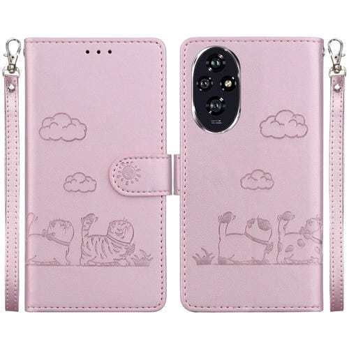 Funda de Cuero Rfid para Honor 200 5G con Diseño de Gatos (Oro Rosa)