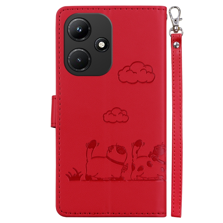 Funda de Cuero Rfid para Infinix Hot 30I con Diseño de Gatos (Roja)