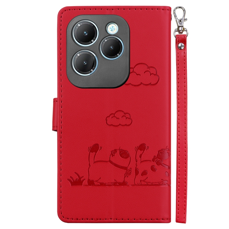 Funda de Cuero Rfid para Infinix Hot 40/40 Pro con Diseño de Gatos (Roja)