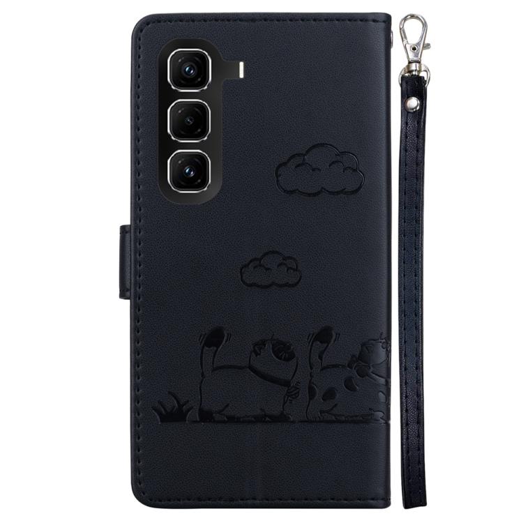 Funda de cuero RFID con diseño de gatos para Infinix Hot 50 Pro 4G (negra)