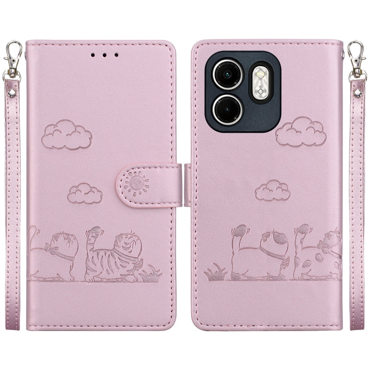 Funda de Cuero Rfid para Infinix Hot 50I Smart 9 con Diseño de Gatos (Oro Rosa)