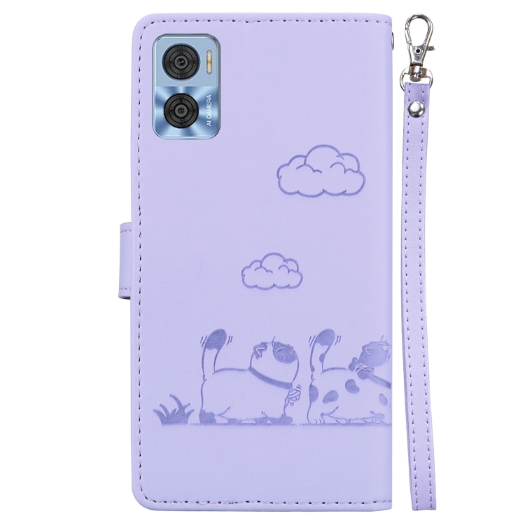 Funda de Cuero Rfid para Motorola Moto E22/E22I con Diseño de Gatos (Morado)