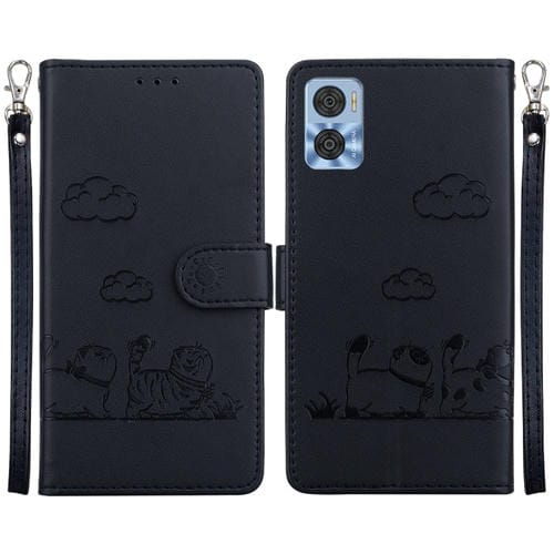 Funda de Cuero Rfid para Motorola Moto E22/E22I con Diseño de Gatos (Negra)