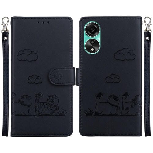 Funda de Cuero Rfid con Diseño de Gatos para Oppo A78 4G (Negra)