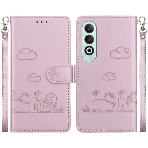 Funda de Cuero Rfid con Diseño de Gatos para Oppo K12 (Oro Rosa)