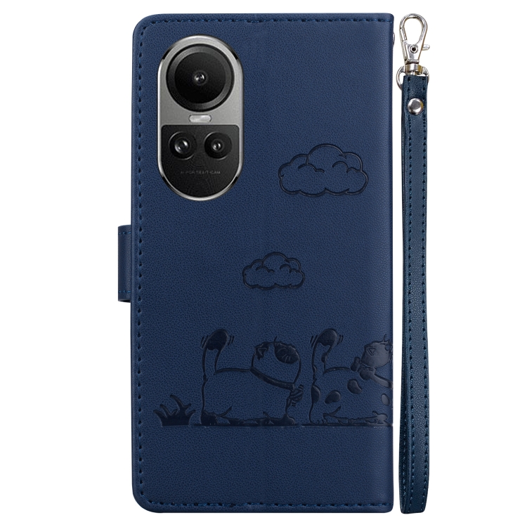 Funda de Cuero Rfid con Diseño de Gatos para Oppo Reno10 5G (Azul)