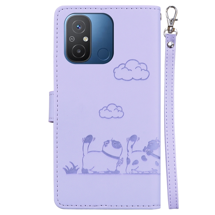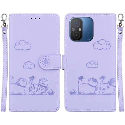 Funda de Cuero Rfid con Diseño de Gatos para Redmi 12C/11A (Morada)