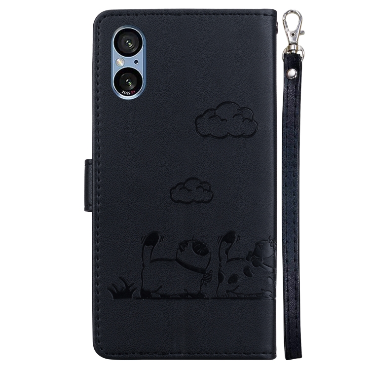 Funda Cuero Rfid Sony Xperia 5 V Diseño Gatos (Negra)