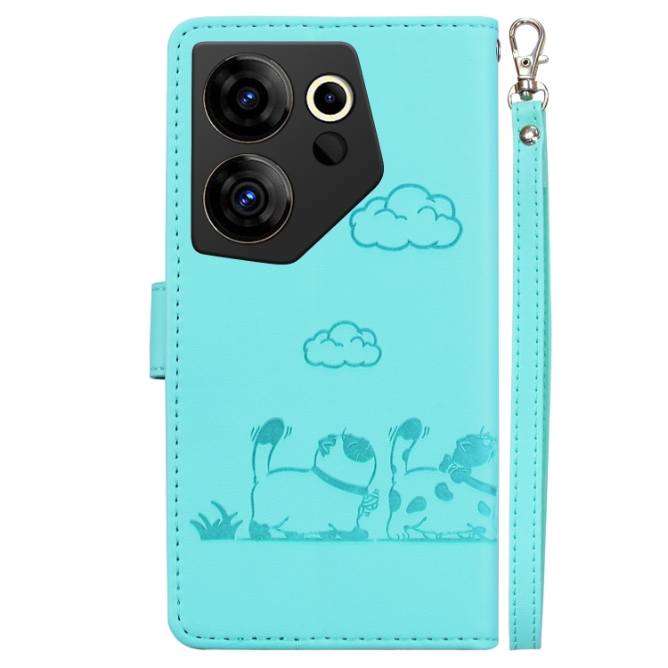 Funda de Cuero Rfid para Tecno Camon 20 Premier 5G con Diseño de Gatos (Verde)