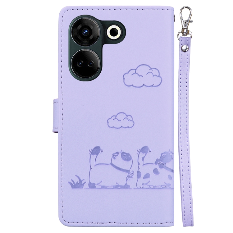 Funda de Cuero Rfid para Tecno Camon 20 Pro 4G y Camon 20 con Diseño de Gatos (Morado)