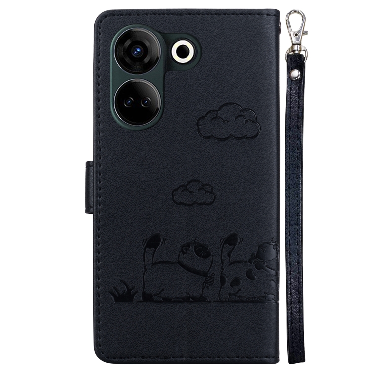 Funda de Cuero Rfid para Tecno Camon 20 Pro 4G y Camon 20 con Diseño de Gatos (Negra)