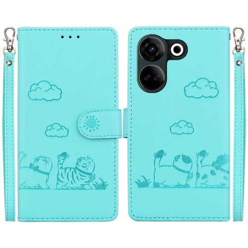 Funda de Cuero Rfid para Tecno Camon 20 Pro 4G y Camon 20 con Diseño de Gatos (Verde)