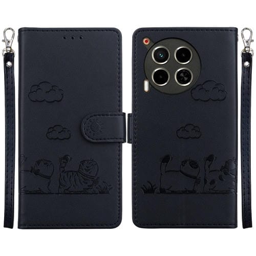 Funda de Cuero Rfid para Tecno Camon 30 5G/4G con Diseño de Gatos (Negra)