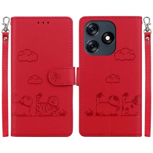 Funda de Cuero Rfid para Tecno Spark 10 4G y Spark 10C con Diseño de Gatos (Rojo)