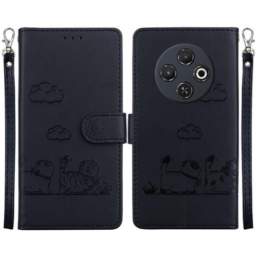 Funda de Cuero Rfid para Tecno Spark 30C con Diseño de Gatos (Negra)