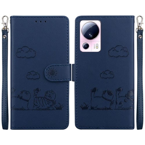 Funda de Cuero Rfid con Diseño de Gatos para Xiaomi 13 Lite/Civi 2 (Azul)