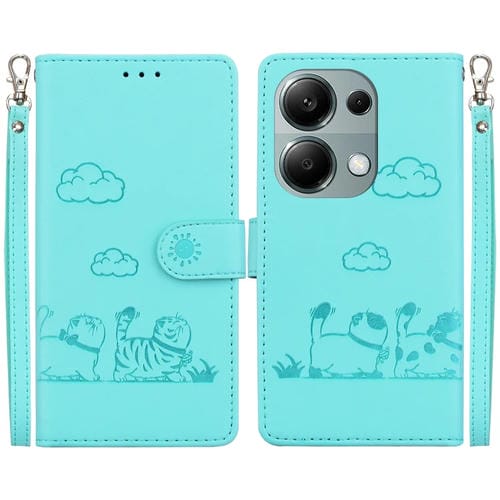 Funda de Cuero Rfid con Diseño de Gatos para Xiaomi Poco M6 Pro 4G (Verde)