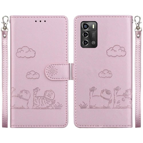 Funda de Cuero Rfid para ZTE Blade A72/V40 Vita con Diseño de Gatos (Oro Rosa)