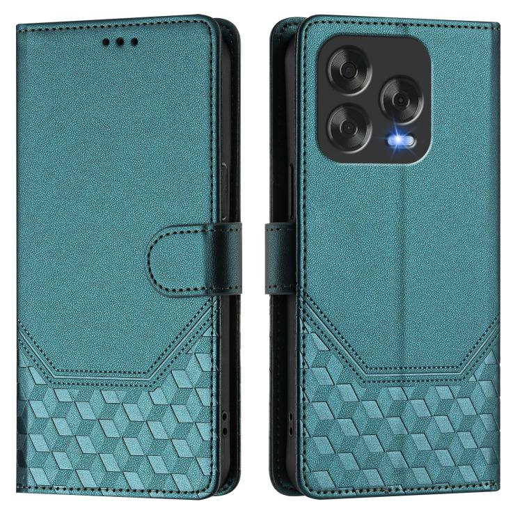 Funda de Cuero Rfid para ZTE Blade V70 con Diseño Panal de Abeja y Relieve (Verde Pavo Real)
