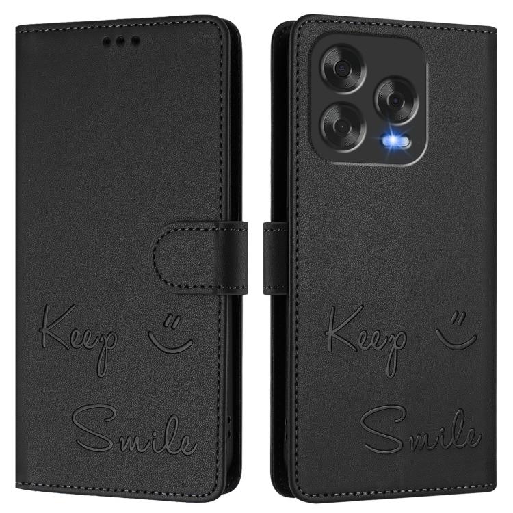 Funda de Cuero Rfid para ZTE Blade V70 con Diseño de Sonrisa En Relieve (Negra)