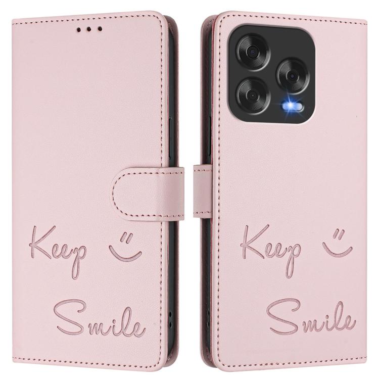 Funda de Cuero Rfid para ZTE Blade V70 con Diseño de Sonrisa en Relieve (Rosa)