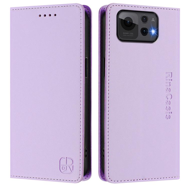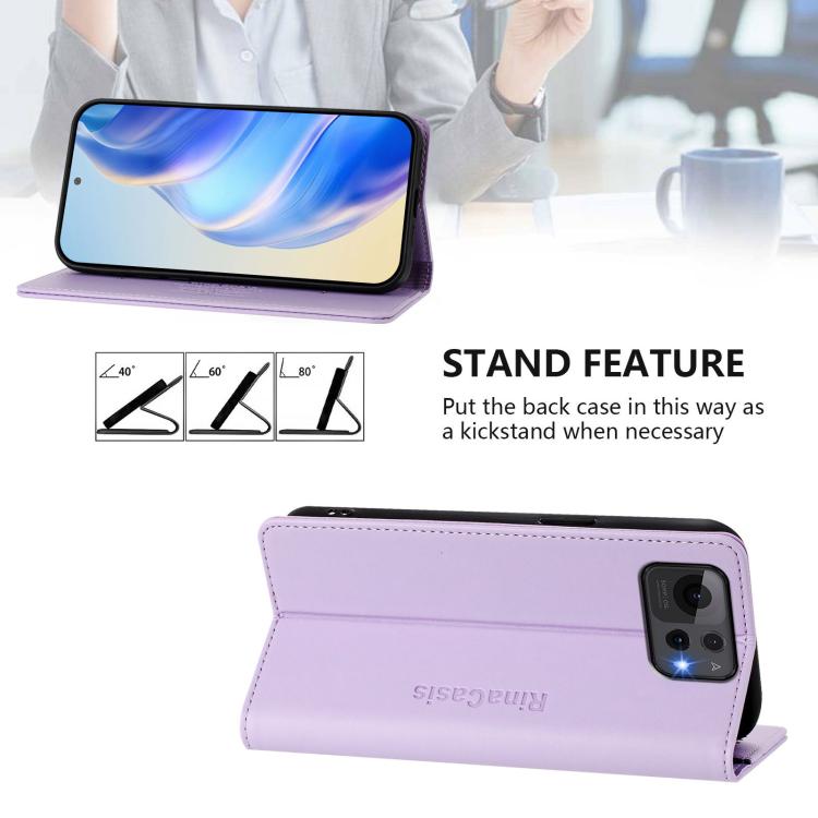 Funda de Cuero Rfid con Doble Pliegue y Succión Magnética para Asus Zenfone 12 Ultra Rc01 (Morado Claro)